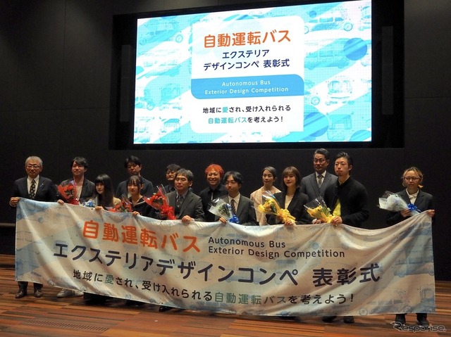 コンペのラッピング部門最優秀賞は福嶋咲さんの「人と自動運転の協調性」、ボディ部門最優秀賞は本田耕さんの「NIWA-BUS 地域で育てる庭のようなバス」と福田英盛さんの「K-mo-limo 軽自動リムジン × ケモノなノリモノ:ケモリモ」がそれぞれ受賞した。