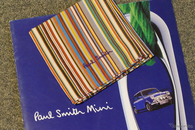 なお写真のうち、ハードカバーのノートとハンカチは、筆者の私物。クラシック・ミニに乗っていた頃、気分だけでも……と入手したもの。確か同じカラーリングのミニが、当時の東京モーターショー会場でも展示された。