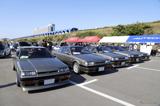 オーテックブルーを思わせる澄みわたった空と海に抱かれたうららかな陽気の中、広大な会場を埋め尽くしたのは、かつてのオーテックジャパン、現在の日産モータースポーツ&カスタマイズ(NMC)カスタマイズ事業部が手がけたオーテック車たちだ。日本全国からオーナーが集い、毎年恒例の里帰りを果たした。