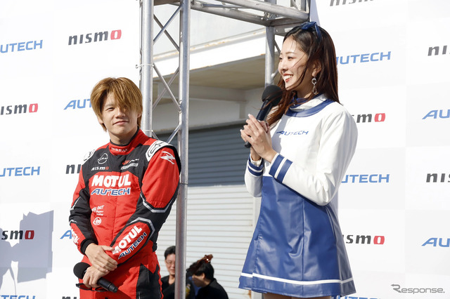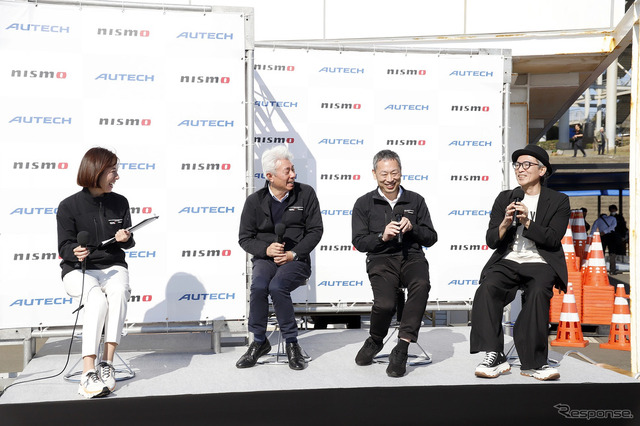 午前はカスタマイズ開発実験部のシニアエキスパートドライバー高澤仁氏と、カスタマイズプロジェクト統括部の成富健一郎氏、カスタマイズデザイン部の山本賢司氏が登壇し開発の裏側などを語った。午後はスペシャルゲスト2人が登壇し、今季SUPER GTの振り返りや会場で気になったクルマについてトーク。高星選手は、幼い頃にカート場へ通った父親の愛車が、オーテックの手がけた『エルグランド』だったと明かし、ここでもオーテックとの浅からぬ縁が浮かび上がった。