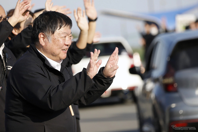 その後はガソリンギフト券を賭けたじゃんけん大会、閉会式、集合写真撮影でプログラムを終えたが、もうひとつ欠かせないのがお見送りだ。真田CEO以下スタッフが総出で約1時間手を振り続け、参加者も手を振り返して帰路に着く笑顔の光景が広がる。これも湘南里帰りミーティングの恒例である。