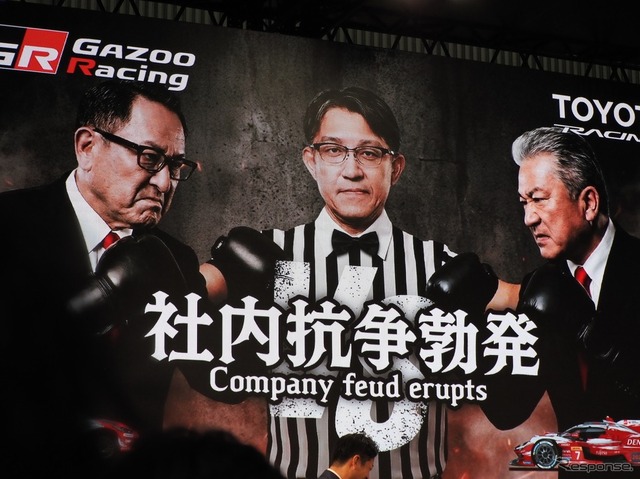 TGRの展示テーマは「喧嘩三番勝負」だ。新春早々おだやかでないが、「親子喧嘩」、「社内抗争勃発」、「カスタム対決」を幕張メッセで展開する。「売られた喧嘩なら買いますよ」と豊田会長は不敵に笑う。