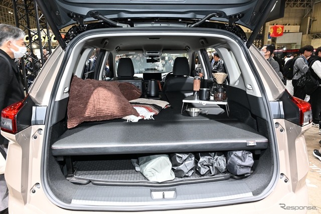 ベッドシステムは、セカンドシート位置から荷室スペース全体にわたって展開できるため、車内を広く使うことができる。またベッドマットは、程よい厚みで就寝時の快適性と耐久性を両立したほか、耐水性、撥水性に優れたCORDURA製の生地を採用し、アウトドアイメージをより強めた。
