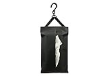 しかし当品は滑りにくい。底面に特殊ラバーが使われているからだ。そして当品はルックスも上々だ。インテリアと調和させるべく落ち着きのあるブラックの本革調生地が採用されていて、使わないときに中が見えないようにファスナーも装備済みだ。面テープ付きのストラップも付いているので、ヘッドレストシャフトにもかけられる。