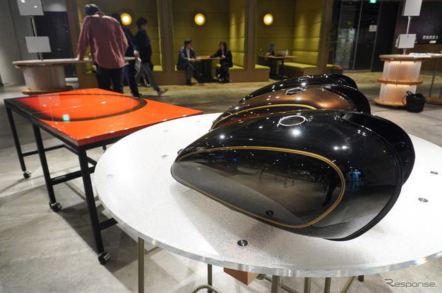 ヤマハ発動機が横浜みなとみらいに構える共創スペース「YAMAHA MOTOR Regenerative Lab(リジェラボ)」に、バイクの部品を使ったファニチャー(家具)が新たに加わった。17日、企画デザイン・制作を手掛けた“空間づくり”企業の船場(せんば)とともに、4アイテムを公開した。