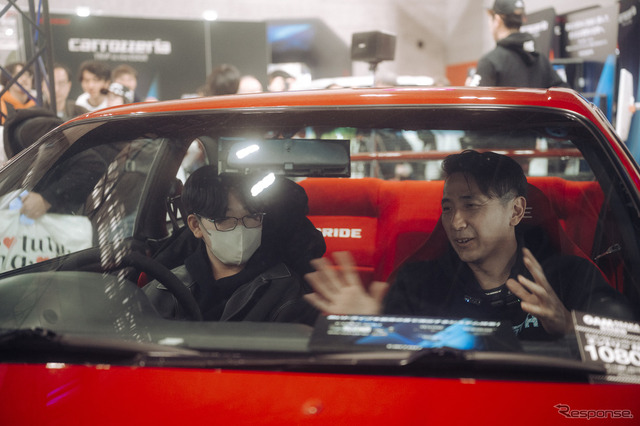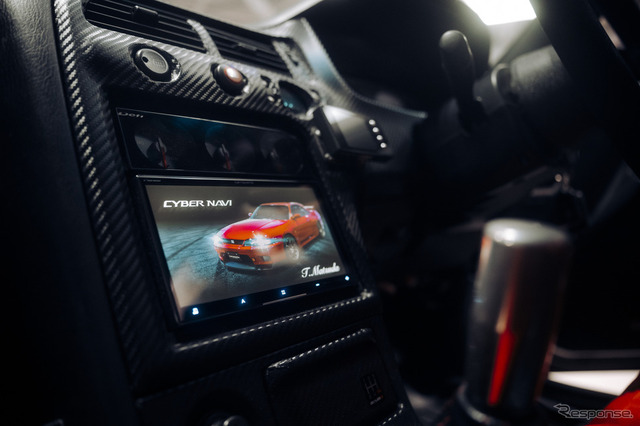 「ドアパネルに隠れて見えないけど、スピーカーが実はカーボンでできてるんですよ、驚きましたね。だから音響がさらにいいんだって。自分が聴きたい曲に対して、RB26のエンジンサウンドが心地よく入ってくる。この絶妙なバランスが最高ですね。スピーカーでこんなに変わるものなんだって、今まで知らなかったです。設定で自分好みの音質に調整できるっていうのもいい。ちなみに僕の設定は公開されているので、皆さんにも同じように設定してもらったら、この良さを体感してもらえますね」