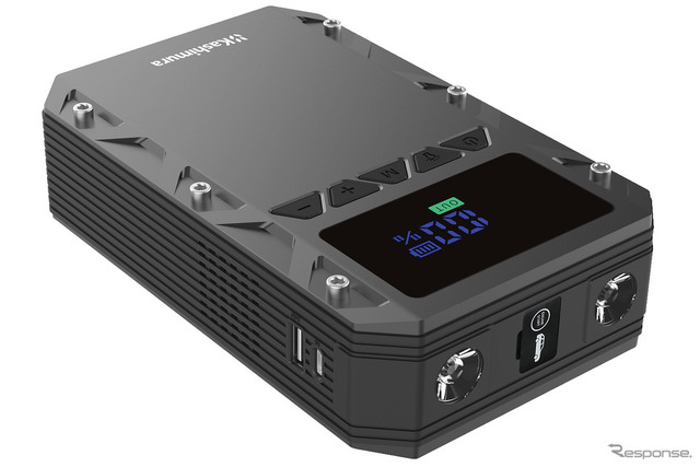 もう1つ、『ジャンプスターター 6400mAh(KD-281)』(価格:オープン、実勢価格:9980円前後)をフィーチャーする。こちらはガソリン車4.0L、ディーゼル車2.0Lまでが対象目安。なお当品は、コンプレッサー機能は持たないシンプル仕様となっている。
