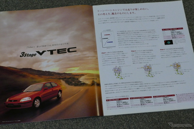 “ミラクル”の根拠でもあったのが、3ステージVTECの採用だった。これは低/中/高回転域のそれぞれでバルブ(とカム)を使い分け、低燃費と高出力を達成するメカニズムだった。またホンダマルチマチックと呼ばれたCVTを採用、3ステージVTECと組み合わせられた。