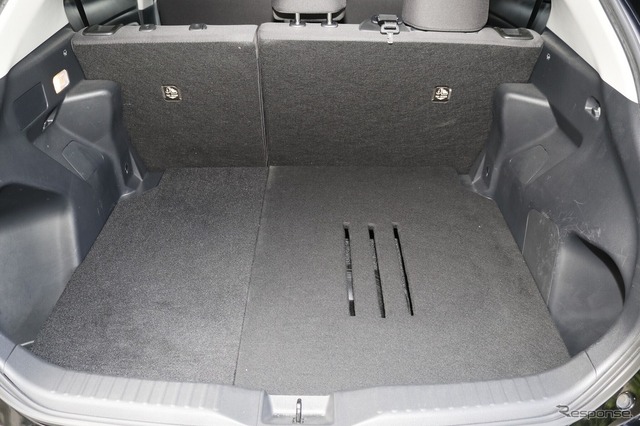 フロアパネルは純正と同じくフラットで高さを抑えた設計。積載性も一切スポイルすることなく、純正と同じ使い勝手を確保する。