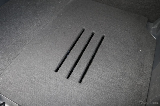 フロアパネルにはサブウーファーの振動板の真上にスリットが施され、フロアパネルで保護した状態でも低音の抜けの良さを確保している。音にシビアなオーナーならではの工夫といえるだろう。