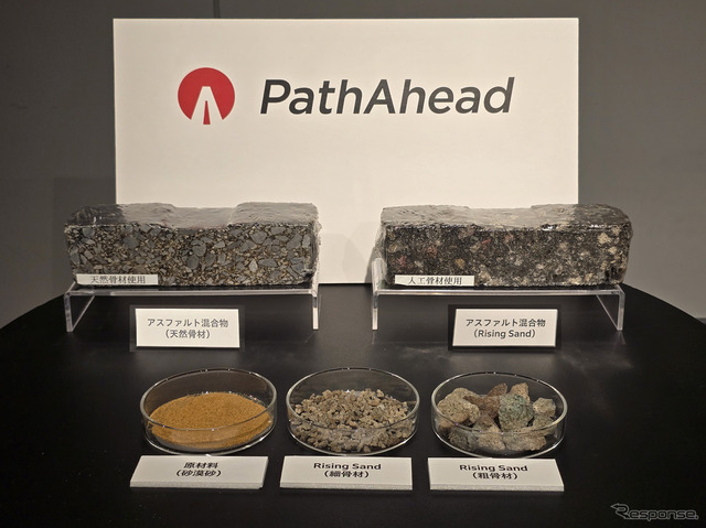 最大の強みは耐久性の高さだ。ダンプトラック級の荷重をかけるトラッキング試験で、日本の天然素材と比べて2.5倍以上の耐荷重値を記録した(PathAhead調べ)。日本で10年設計の道路に使えば20年以上持つ計算になる。ライフサイクルコストは従来の約60%に抑えられる見込みだ。