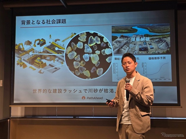 PathAheadの技術顧問を務める永田佳文さん(元首都高速道路部長、道路インフラの維持管理が専門)は、囲み取材でこう語った。「車を作ってる方が土木の相談に来たので、最初はびっくりしました。でも、すごく勉強してるなと思った。何か作りそうだなと感じました」。骨材を作れるという技術に惹かれ、永田さんは即座に参画を決めたという。