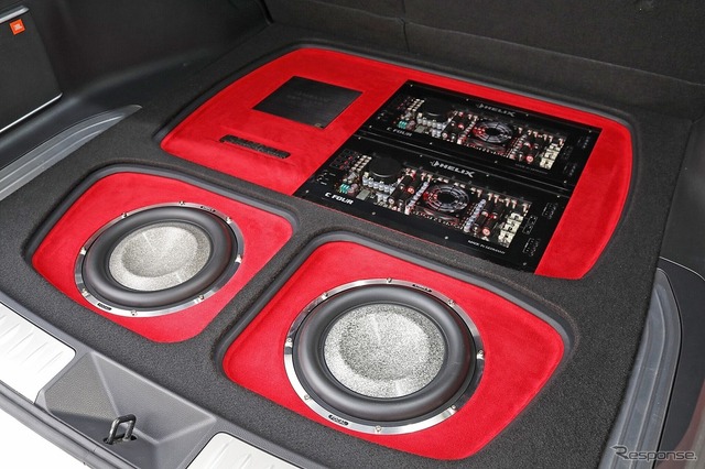 DSPにはヘリックスのDSP ULTRAをチョイス。こちらもラゲッジのフロアにフラットにインストールし、フロアデザインの一部として取り入れている。ブラックのフェイスパネルは、フロアに用いたブラック×レッドのカラーコーディネートにもよくフィットしている。