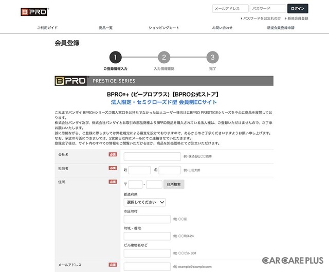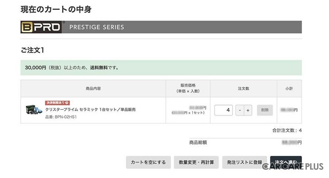 「BPRO+」は、メーカー直販の信頼性に加え、プロ向けの本格ボディコーティング剤を1点(車両1台分)から発注できるため、過剰な在庫リスクを抑えたい小規模事業者にとって魅力的と言える。決済はクレジットカードに対応(順次拡充予定)しており、税抜30,000円以上の購入で送料無料となる。